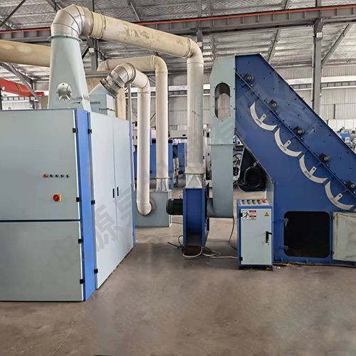 六滾筒開毛機主要開松原絨:山羊絨、綿羊毛、牦牛絨、駝絨等動物纖維。本機開松輥采用斜式排列,充分利用離心力,是去粗、去雜、去皮的最佳效果。結合風機吸風均勻落入和毛倉,是梳理前配備的必要產品。